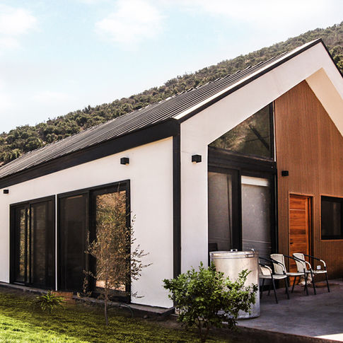 El desafío del presente proyecto se enmarca en el posicionamiento de una vivienda a 2 aguas en la parte mas alta de un cerro ubicado en la comuna de Pirque. Estas condicionantes nos hicieron tener que, por una parte, aprovechar la belleza de la amplitud visual que teníamos desde lo mas alto del cerro, y por otro lado replantear el arquetipo de la casa de campo a dos aguas; con su espacialidad interna para alojar los recintos de la vivienda encomendada. De esta manera es que se organizaron los espacios mas importantes de la vivienda con proyección hacia el valle, y otra zona de recintos hacia la zona del corte del cerro. La forma de 2 aguas permitió además diseñar con altura completa la zona de living-comedor-cocina, entendiendo la altura completa de la cubierta.